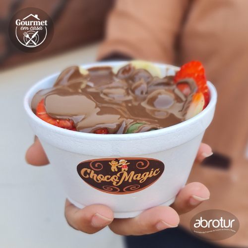 Prepare-se para mergulhar na magia! O @chocomagicsp traz ao Gourmet em Casa um clássico irresistível: Fondue de frutas com chocolate ao leite.