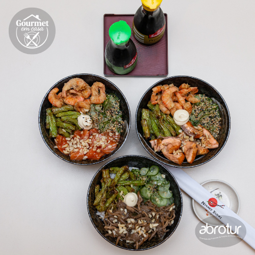 Nosso Poke combina o tradicional shari da família Nikkey, herança de gerações descendentes de japoneses, com salmão, camarão frito, sunomono, nossa famosa salada de vagem e o toque crocante da macadâmia, que harmoniza cada mordida. Você escolhe como viver essa experiência: