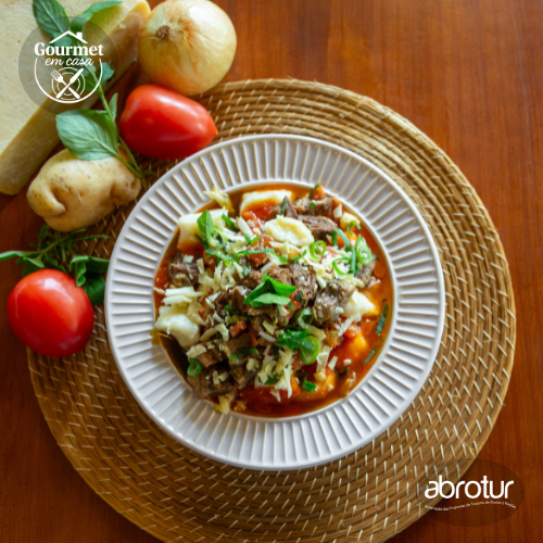 O @pocaobrotas traz para o Gourmet em Casa um clássico que aquece o coração: Nhoque de Batata caseiro como o das nossas avós, acompanhado de um suculento ragú de filé mignon feito com ingredientes frescos e de primeira qualidade.