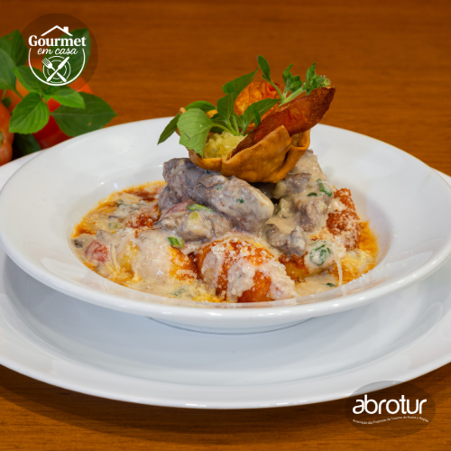 Tem coisa mais gostosa do que comida feita com amor? O @restaurantecamillo chega ao Gourmet em Casa com um prato pensado para aquecer o coração: conchiglione recheado com queijos, coberto por um molho de cogumelos cheio de sabor e acompanhado de iscas macias de mignon. É prato de carinho, de mesa cheia, de aconchego. Um convite para sentir o afeto em cada detalhe e transformar a refeição em um momento especial.